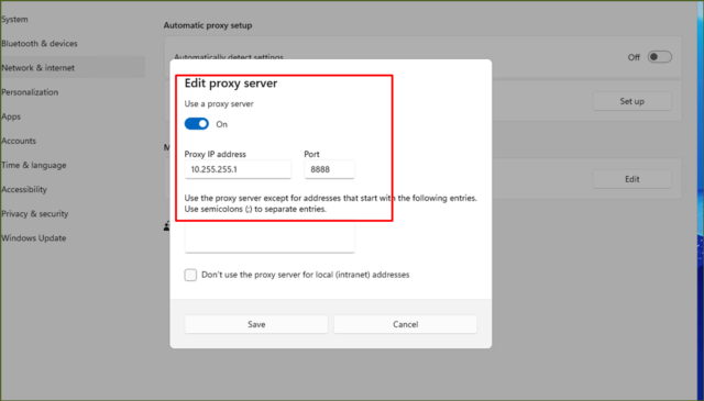 参考リンク:Windows でプロキシ サーバーを使用する