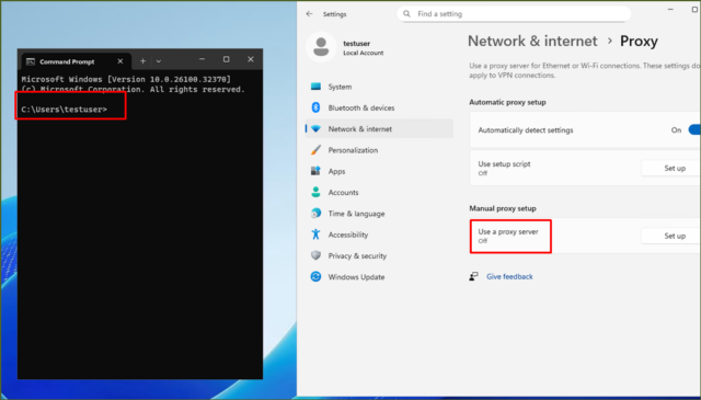 Windows Serverの手動プロキシ設定は、今回の検証でユーザー単位であることがわかりました。そのため、同じサーバーでもユーザーが異なる場合、違った結果になることがあります。