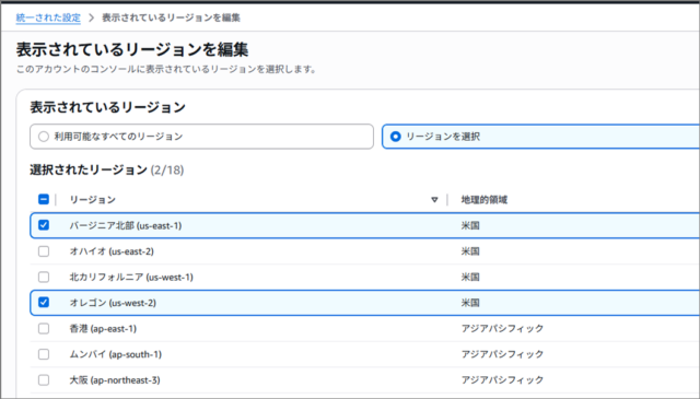 これも地味にうれしいアップデートです。実際のプロジェクトでは利用リージョンが限られていることが多く、使わないリージョンまで表示されていると誤操作の原因になりがちです。特にAWSに不慣れなメンバーが誤ったリージョンにリソースを作成してしまうケースもあるため、表示制御によってヒューマンエラーを減らせる点は運用目線で大きなメリットだと感じます。